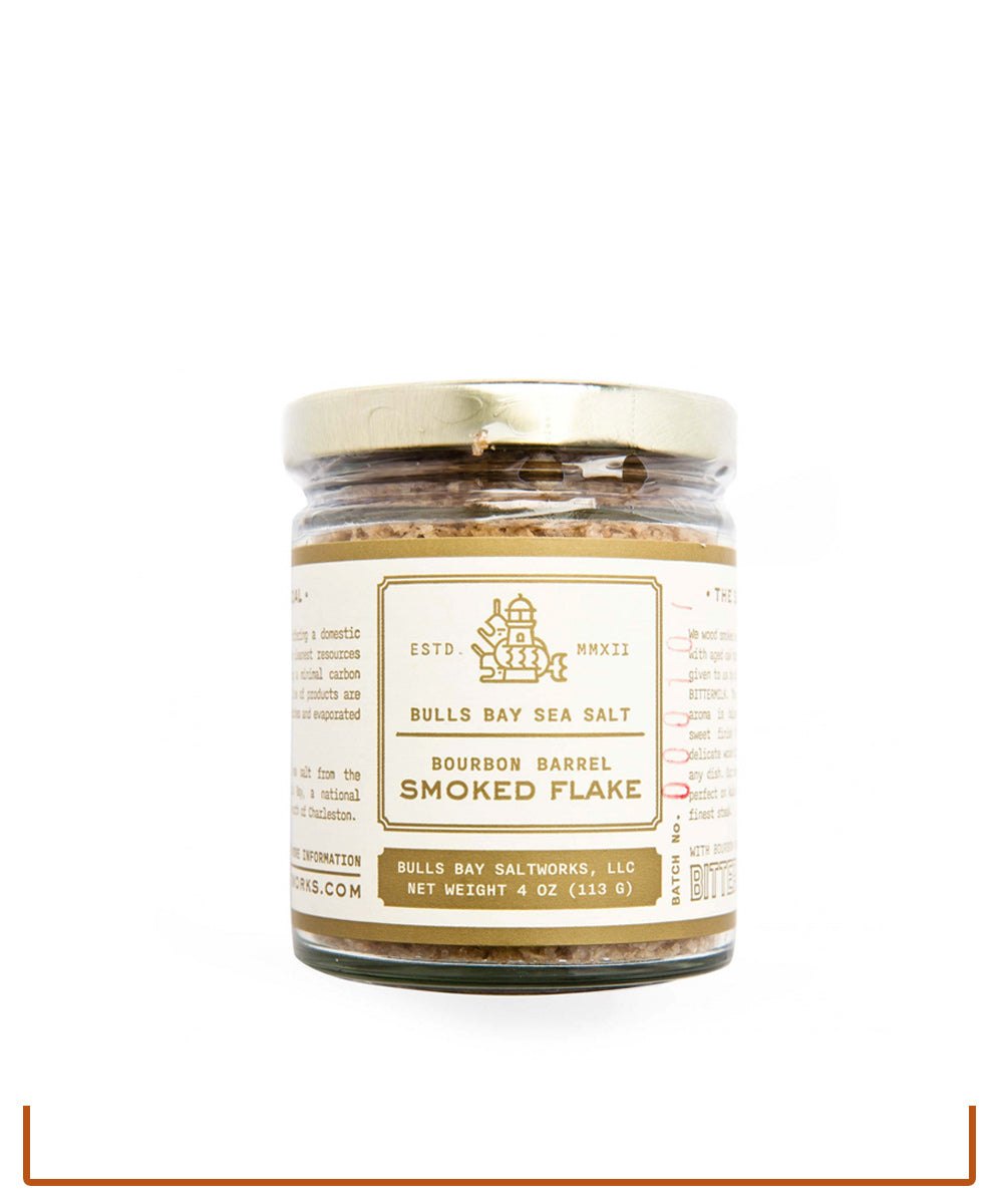 Sustainably harvested sea salt from the SC Lowcountry seashore, infused with smoke from bourbon barrels that were used to age used to age Charleston's own Bittermilk's No.3 Smoked Honey Whiskey Sour cocktail mix. 4oz jar (also available in 1/2 ounce sample packs)