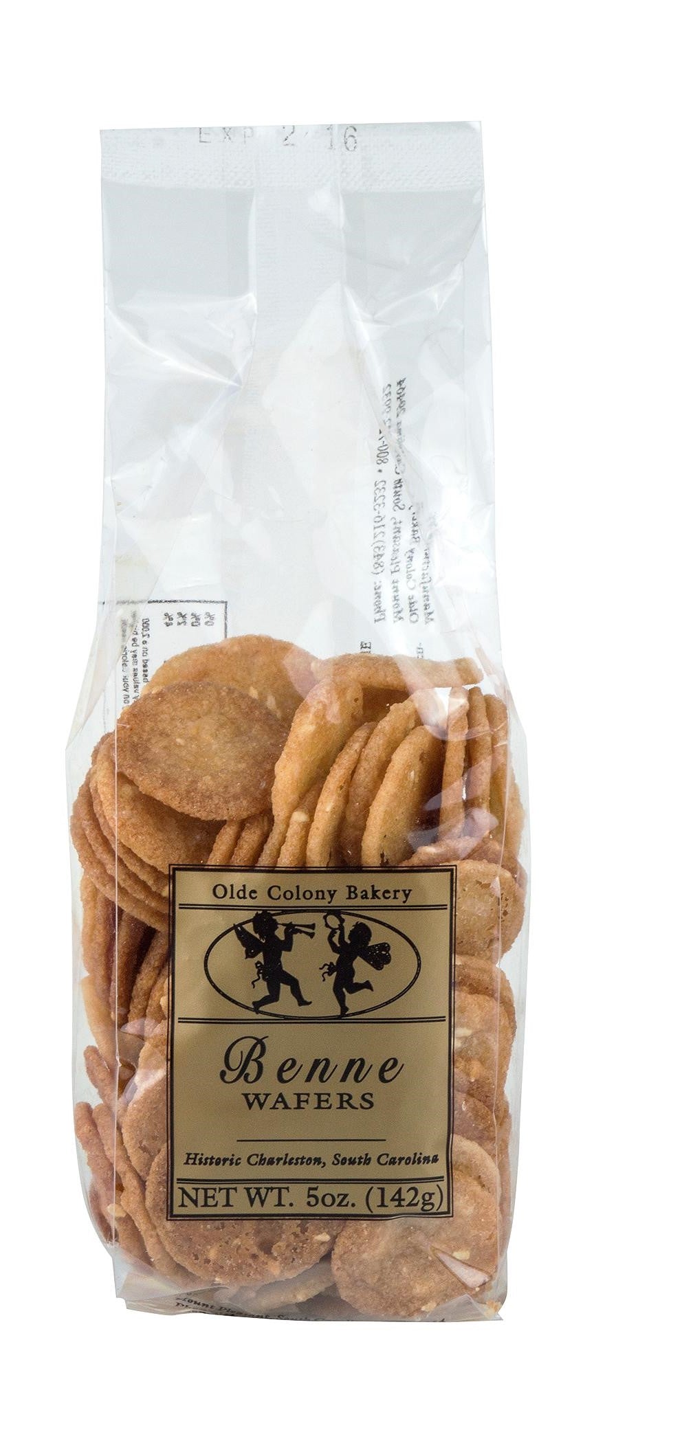 The benne wafer is a sweet nutty wafer cookie flavored with modern day sesame seeds; famous throughout Charleston and the Lowcountry. Package includes history of the benne wafer. 3oz