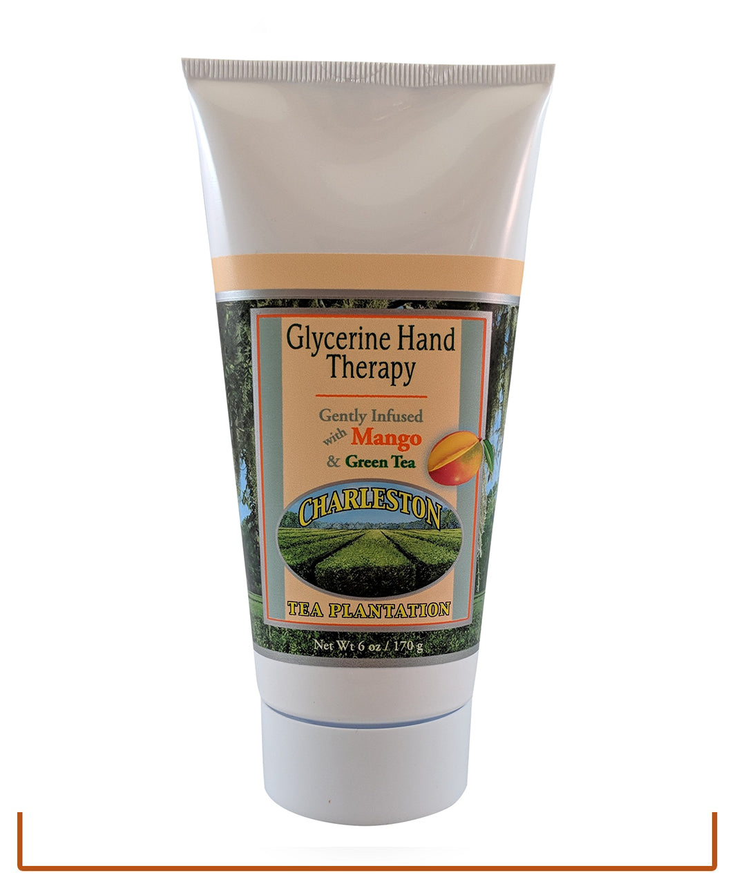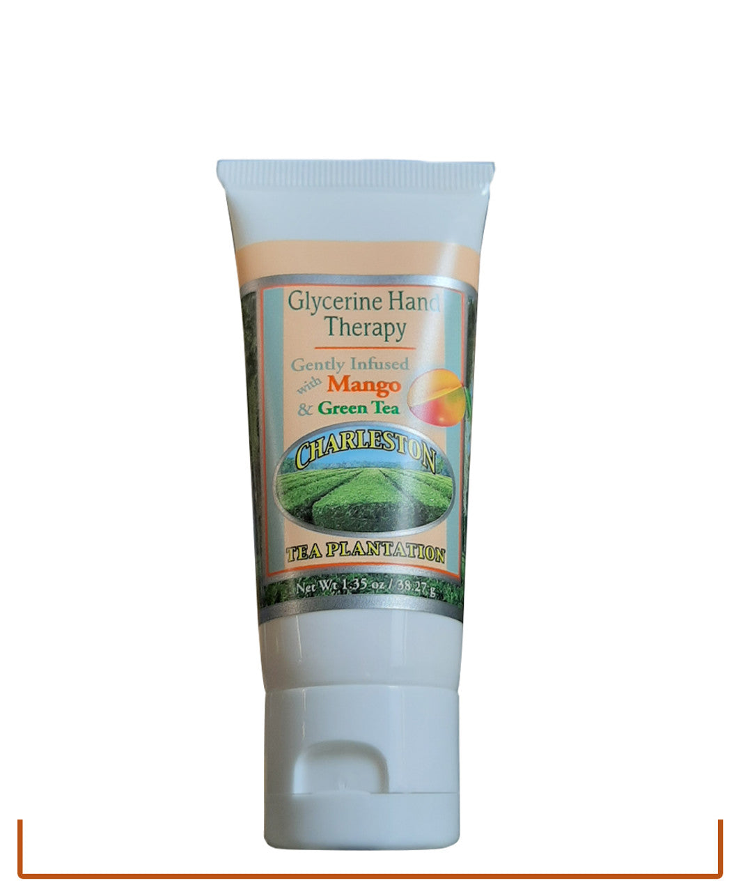 Glycerin Hand Therapy Lotion gently infused with green tea and mango from the Charleston Tea Plantation. 1.35 oz or 6oz