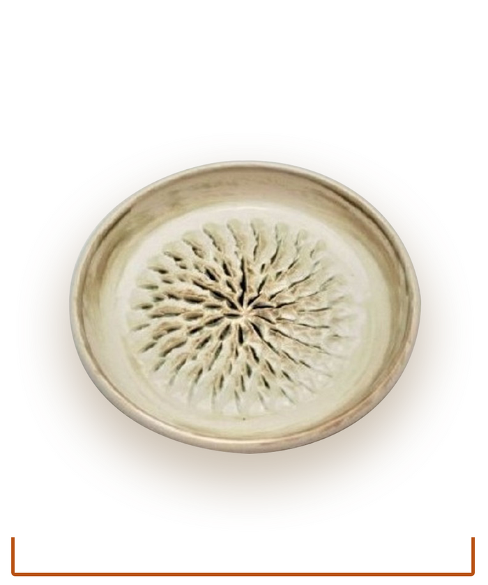 This easy-to-use, handmade pottery dish makes a perfect gift when paired with our uninfused oils (Lowcountry Blend, Georgia, Spanish, Arbequina, Koroneiki, or Early Harvest Organic Koroneiki). Use grater plates to grate parmesan and fresh garlic, drizzle with any Lowcounty Olive Oil and our Traditional Balsamic and you'll have a delicious bread dipping blend. Hand-crafted grater plates can also be used to grate fresh ginger, cinnamon and chocolate or zest oranges and lemons.