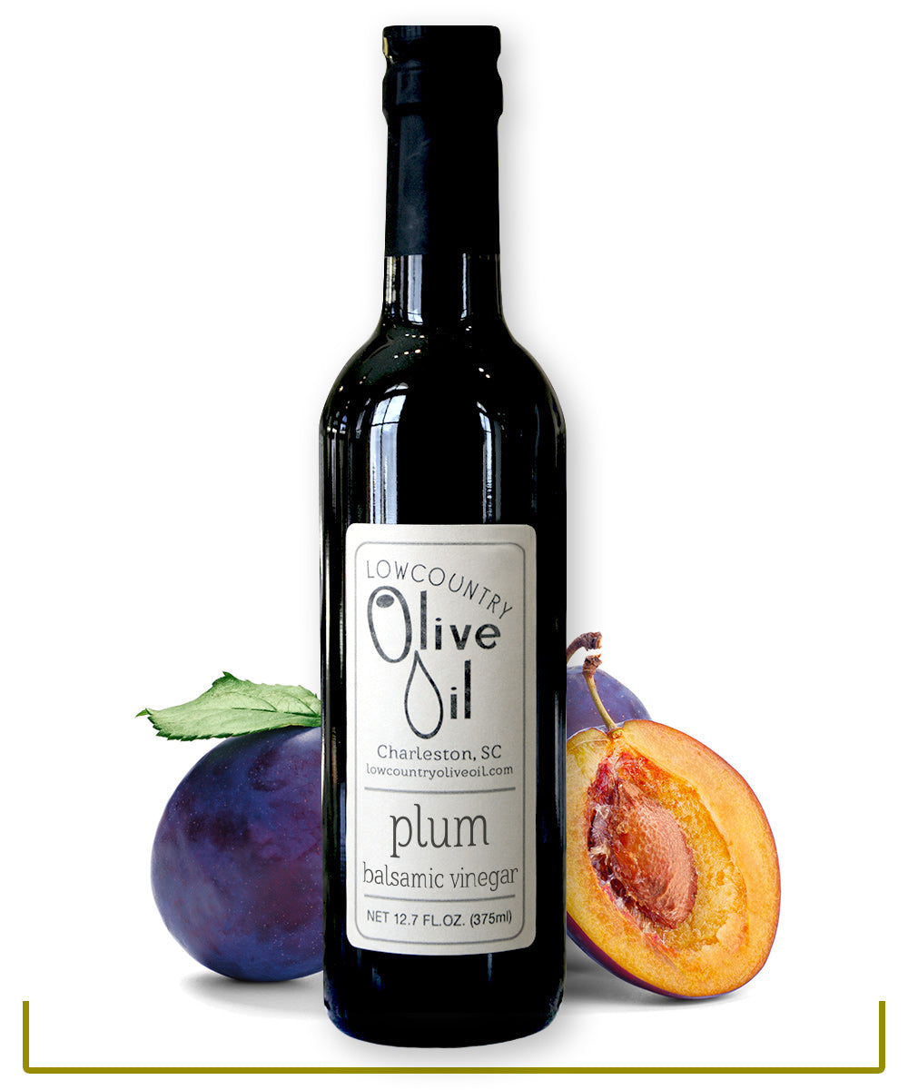 Our premium aged 25 star balsamic infused with the distinctive fruitiness of plum. Excellent on fruit salads, green salads, marinades and aged cheeses. An exclusive Lowcountry Olive Oil product. 375ml/12oz